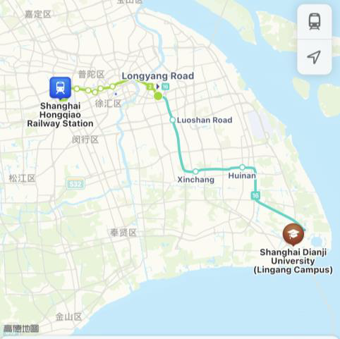 Metro: Take Line 2 from Hongqiao Airport Terminal 2 station/Hongqiao railway station and transfer to Line 16 at Longyang Road Station. Get off at Lingang Avenue Station and exit through Gate 1. From there, you can take a taxi or Bus No.1009 to Shanghai Dianji University, which is approximately 6 kilometers away.
