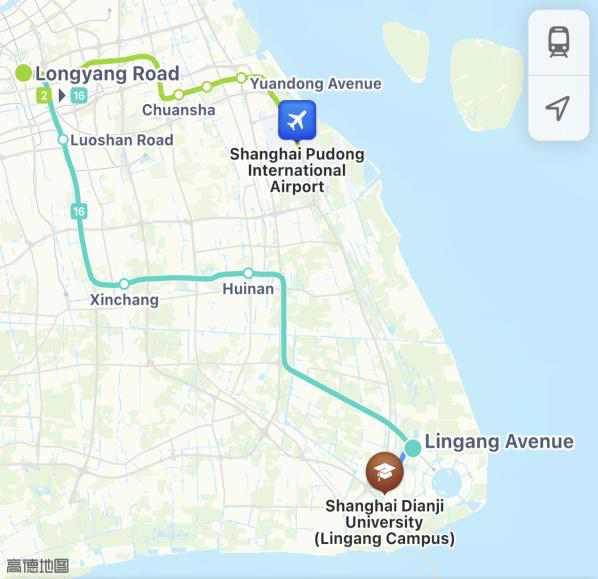 Metro: Take Line 2 and transfer to Line 16 at Longyang Road Station. Get off at Lingang Avenue Station and exit through Gate 1. From there, you can take a taxi or Bus No.1009 to Shanghai Dianji University, which is approximately 6 kilometers away.